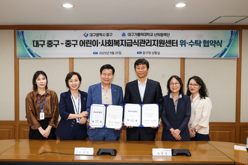 대구 중구청은 지난달 25일 대구가톨릭대학교 산학협력단(단장 윤협상)과 ‘중구 어린이·사회복지 급식관리지원센터 위탁 운영’ 협약을 체결했다고 10일 밝혔다.