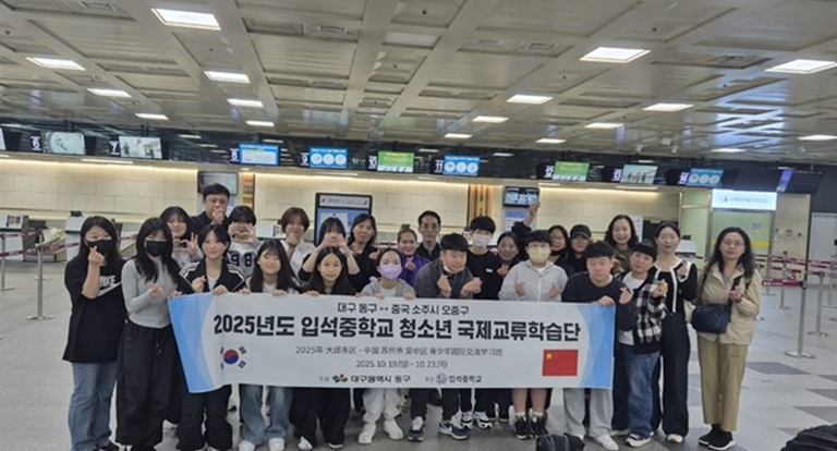 동구청은 지난 19일부터 23일까지 4박 5일 동안 입석중학교 학생 12명과 교원 3명이 중국 소주시 오중구 영춘중학교를 방문해 글로벌 소통과 문화교류 프로그램을 진행했다고 밝혔다.
