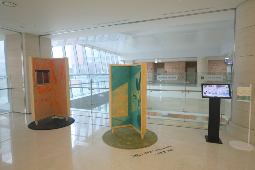 이번 미술전은 ‘꿈’에 관한 이야기를 주제로 세 명의 작가들의 개성이 잘 드러난다. 장하윤 작가의 ‘낮과 밤’, 정진경 작가의 ‘발견의 즐거움’, 정민제 작가의 ‘가든 엣 홈’ 등 작품들을 통해 환우들을 꿈의 여행으로 초대한다. 낮 시간과 밤풍경에 대한 인식, 빛의 변화 관찰, 일상의 오브제 등에서 그들이 전달하는 꿈의 이야기를 느껴볼 수 있다.