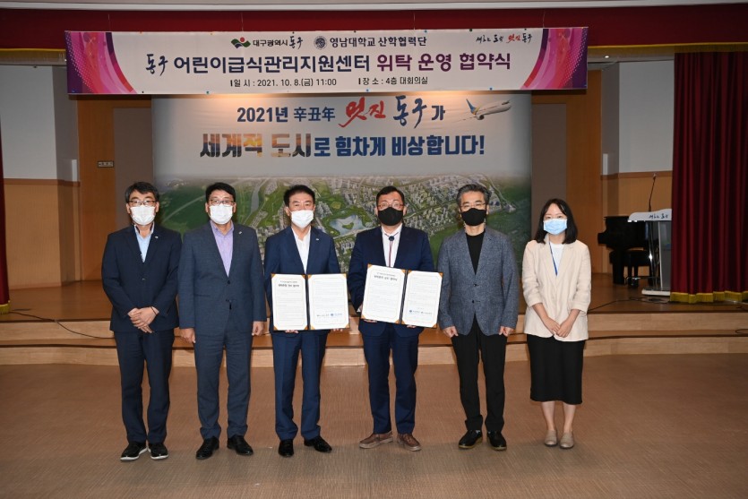 대구 동구청이 지난 8일 영남대 산학협력단과 동구 어린이급식관리지원센터 위탁 운영 협약식을 개최했다고 밝혔다.